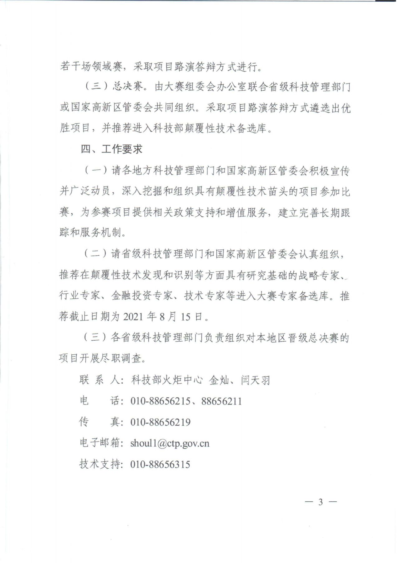 科技部关于举办全国颠覆性技术创新大赛的通知